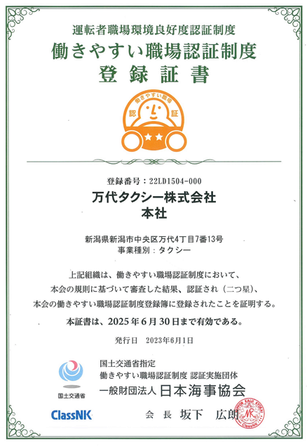 今後も万代タクシーはより働きやすい環境を継続、さらなる向上を目指しています。